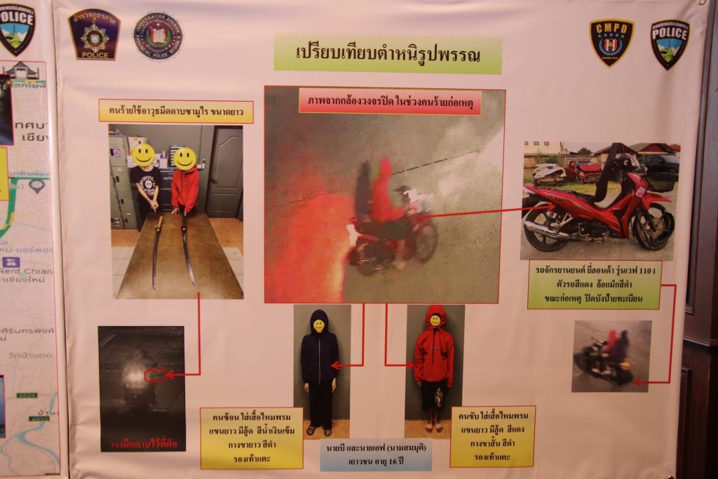 จากการสืบสวน ข้อมูลจากกล้องวงจรปิด การข่าวจากกลุ่มแก๊งค์วัยรุ่นในพื้นที่ ข้อมูลจากสื่อออนไลน์ต่างๆ จนกระทั่งสามารถสืบทราบว่าผู้ต้องหา เป็นเยาวชน
