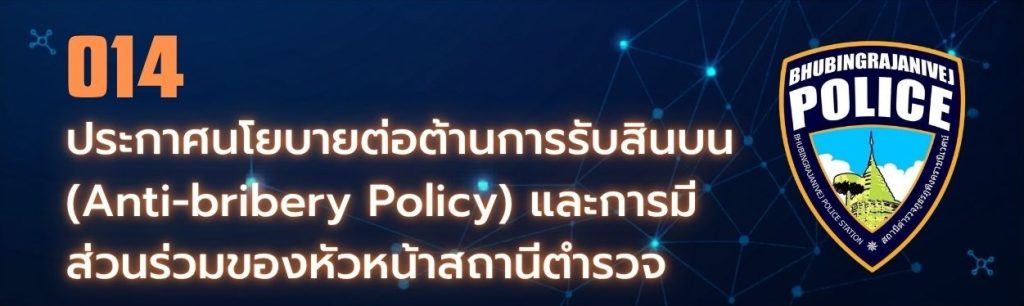 - O14-ประกาศนโยบายต่อต้านการรับสินบน (Anti-Bribery Policy)และการมีส่วนร่วมของหัวหน้าสถานีตำรวจ